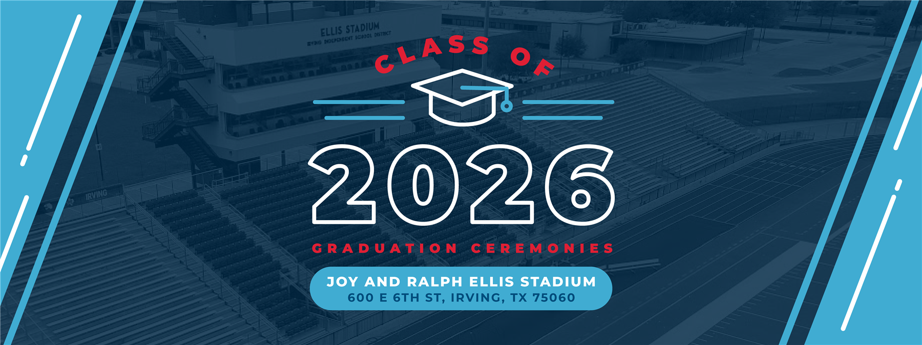 Irving ISD is excited to celebrate the Class of 2026 at graduation at the Joy and Ralph Ellis Stadium in Irving! On this page you will find event details, instructions and tips to make the BIG day a success. A full graduation toolkit and FAQ will be provided as graduation nears.