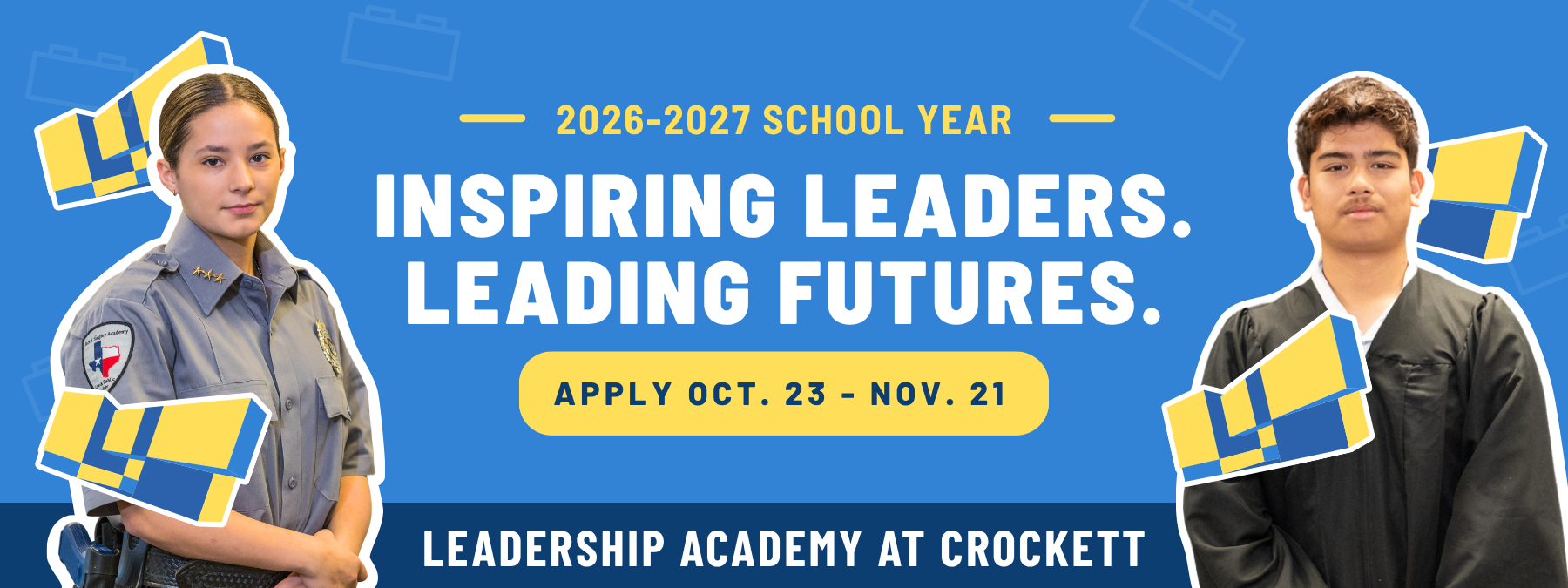 Incoming 6th-8th graders may apply for the Leadership Academy at Crockett for the 2026-2027 school year.